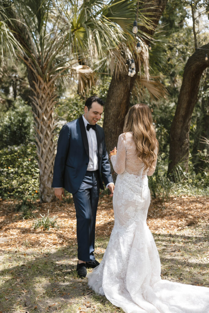 From the moment guests arrived, Rachel and Austin’s Middleton Place wedding felt like a celebration of style, joy, and connection. The ceremony unfolded in the gardens, surrounded by nature and an air of laid-back elegance. Rachel looked radiant in a lace long-sleeve gown with a stunning train that transformed into her second look for the reception that evening.